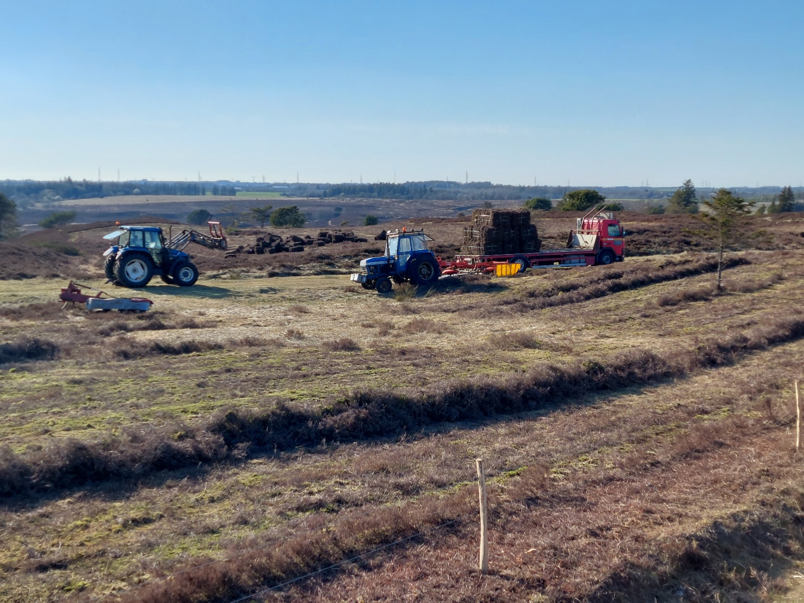 Maskinslåning og bortkørsel af lyng. Hedeplejen bør i fremtiden ske ved at regulere dyretrykket med store græssere.